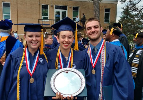 The Phyllis Betts Founders Award is supported by The Phyllis Betts and Richard Janikowski Fund in honor of Phyllis Betts, who founded the UNC Asheville Honors Program in 1985. It is given annually to a graduating University Honors Scholar who most embodies the liberal arts ideal of polymathematics and well-roundedness, having excelled in distinct and often distant fields of study.