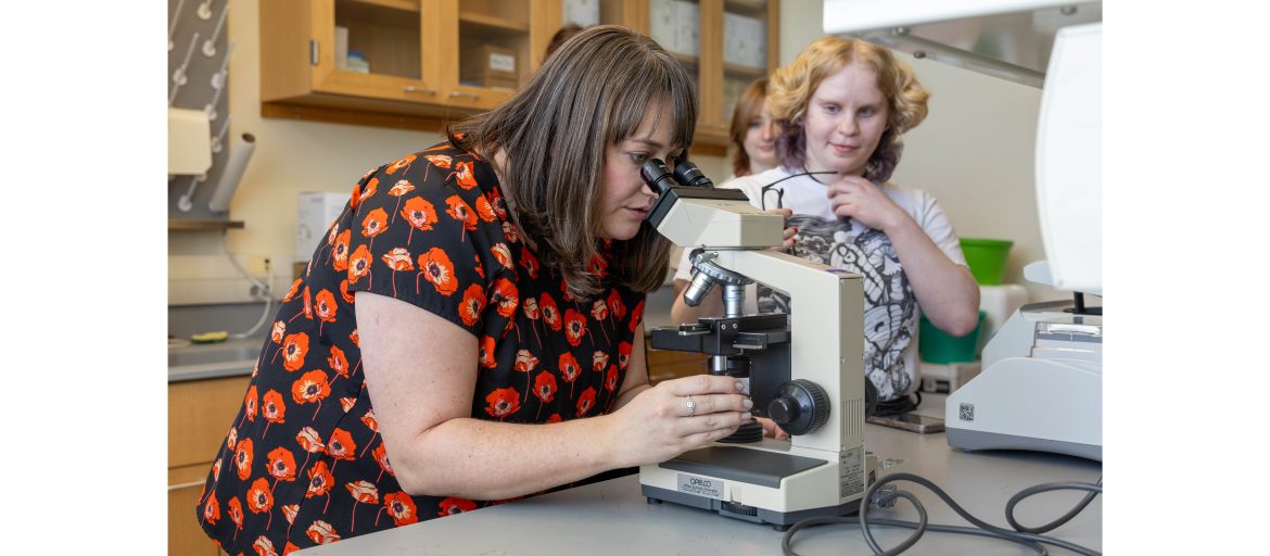 Assistant Professor of Biology Courtney Clark-Hachtel and students search for tardigrades in samples gathered in the wild. Photo by UNC Asheville/Emmanuel Figaro.